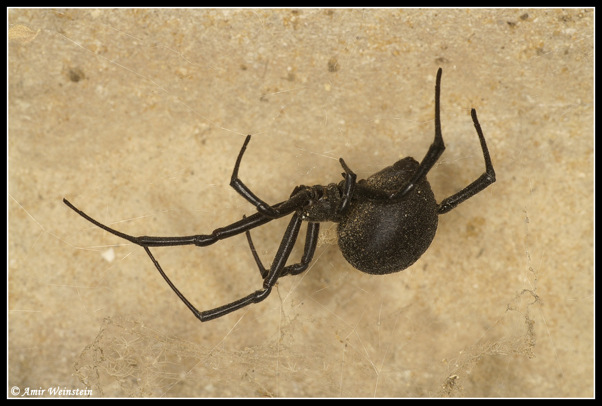 "Черная вдова" - это самый распространенный ядовитый паук на территории Израиля. Он черного цвета, иногда на его теле видны ярко-красные полоски или длинное красное пятно в виде песочных часов. Длина тела паука около 12 мм. Самки более ядовиты, чем самцы. Яд "черной вдовы" считается очень сильным, но в большинстве случаев не смертельным, при условии своевременного введения противоядия.
